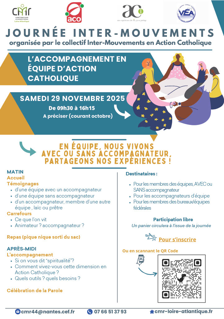 Propositions de rencontre sur la région LOIRE-OCEAN 16 novembre 2025 journée diocésaine - 29 novembre 2025 formation à l'accompagnement des équipes (inter-mouvements)