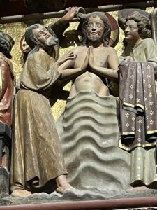 Le Baptême de Jésus par Jean le Baptiste était un baptême de conversion, de repentance. Si le Christ le reçoit, ce n’est guère parce qu’il avait besoin de se convertir, lui, l’Agneau sans tâche, mais juste pour sacrifier à la tradition juive par solidarité pour son peuple et en toute humilité.